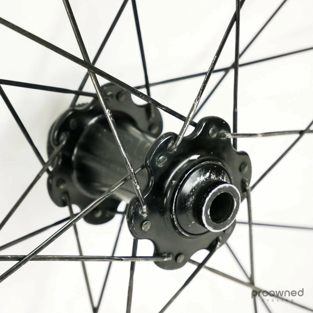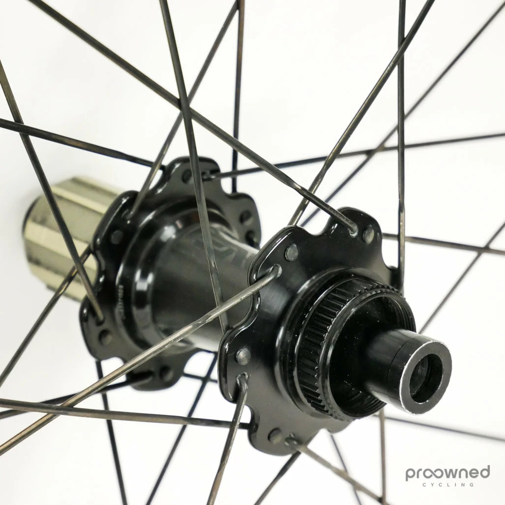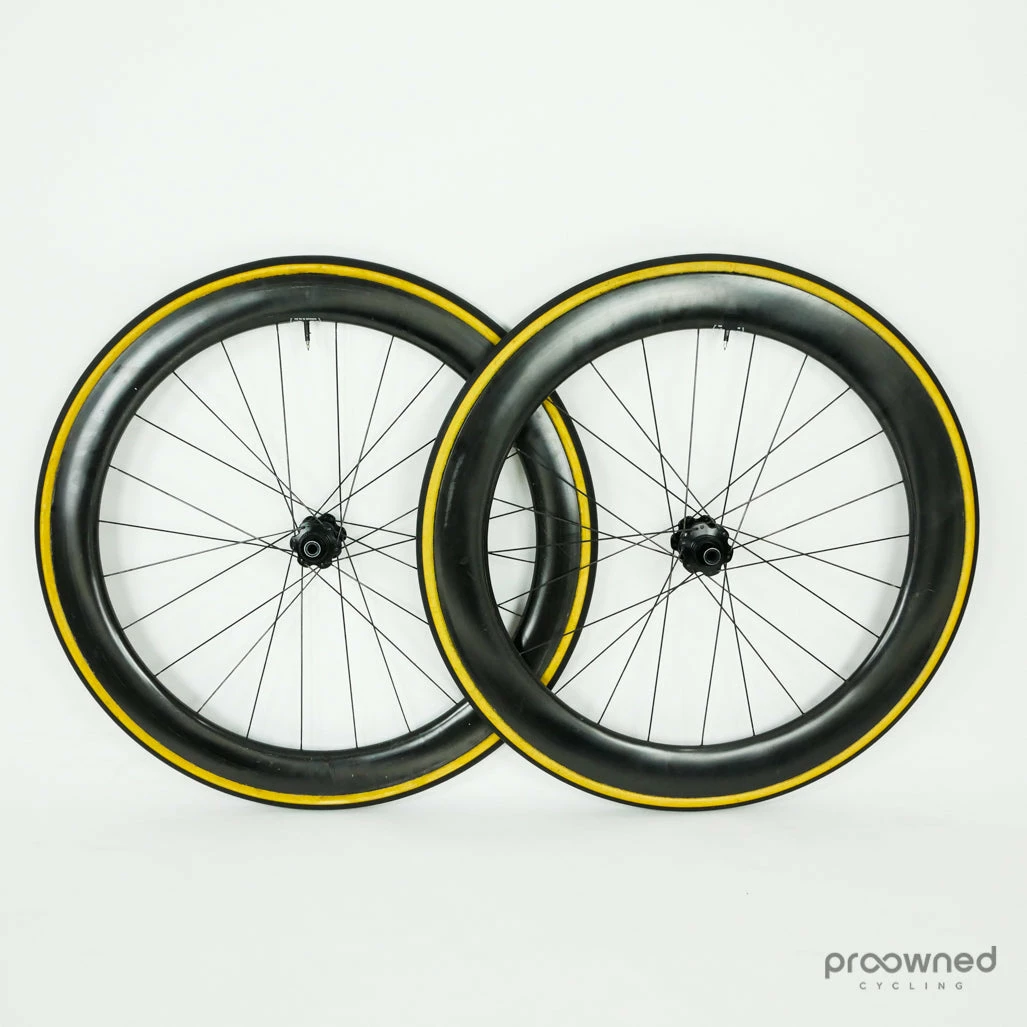 The wheelset is used but only shows a few minor cosmetic scratches, nothing that affects the performance of the wheel. The wheelset is equipped with a pair of Vittoria Corsa Graphene 25mm tires. The tires are used but in good condition.