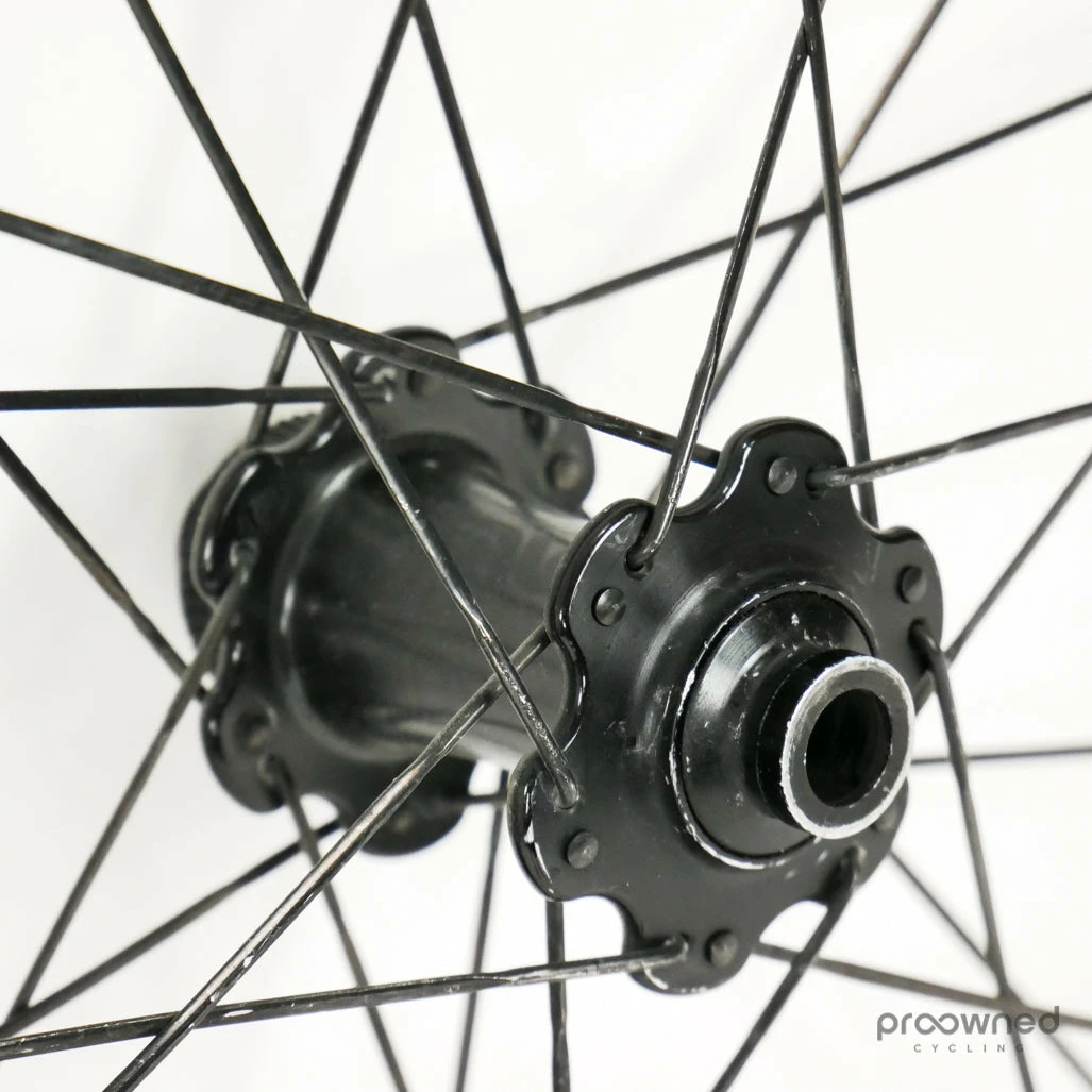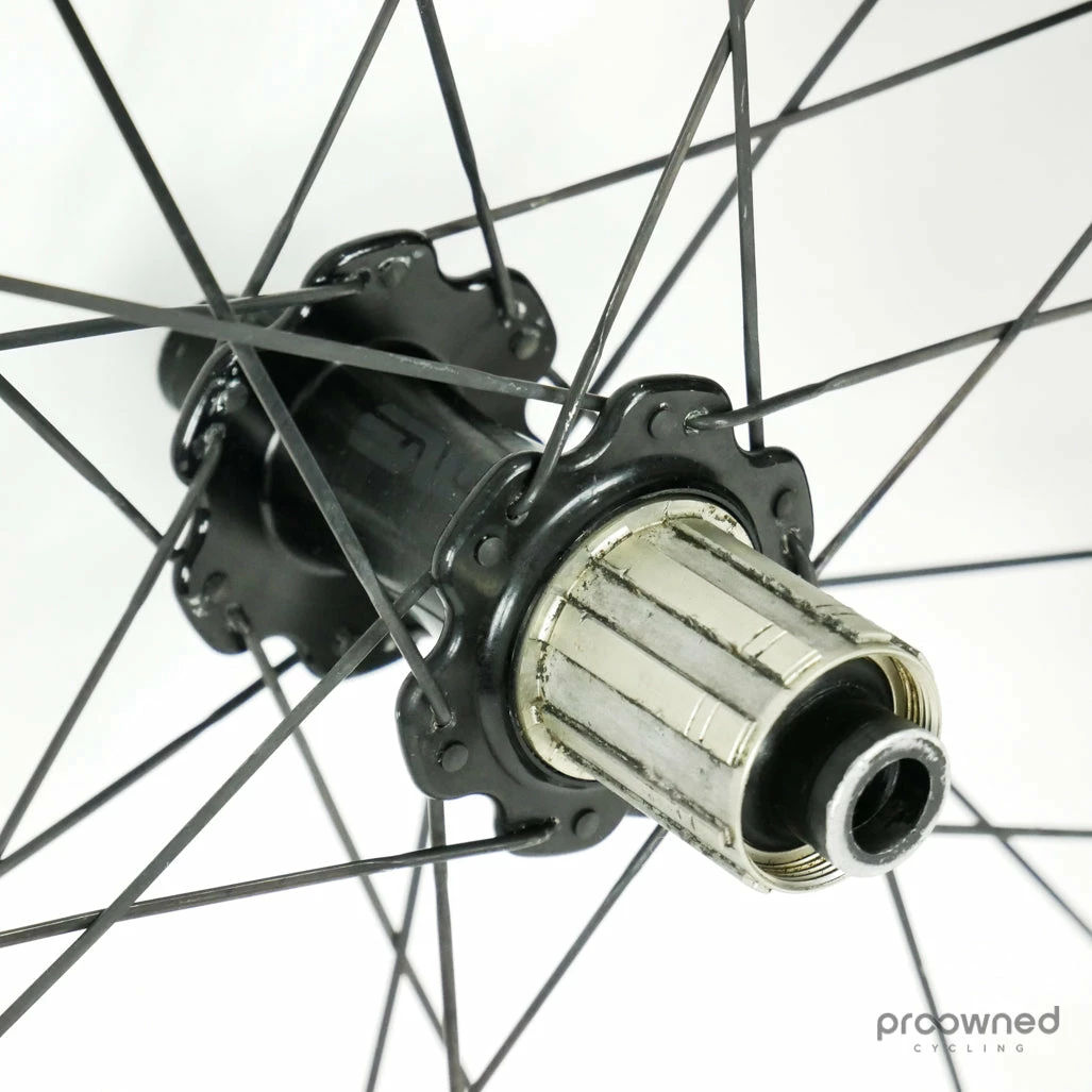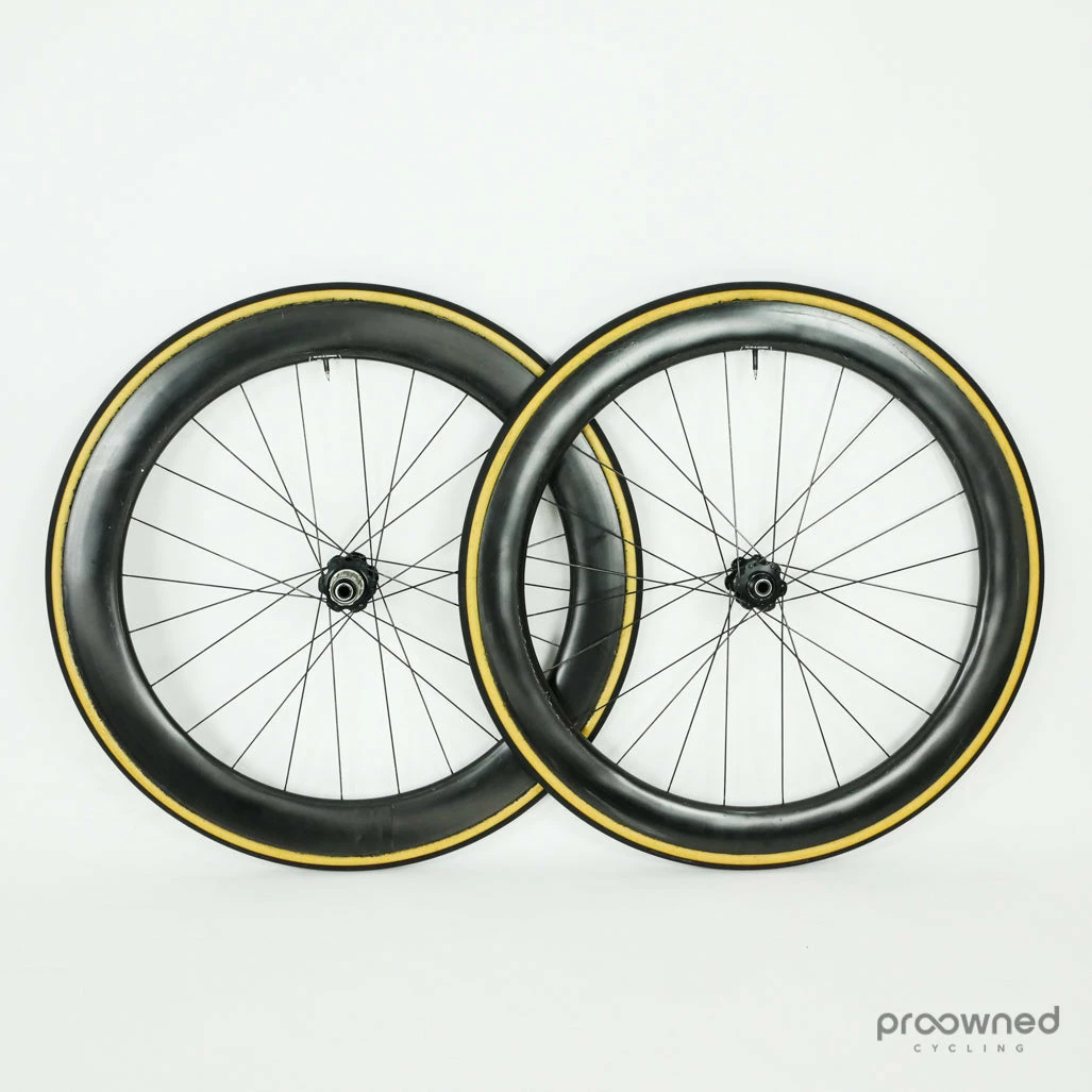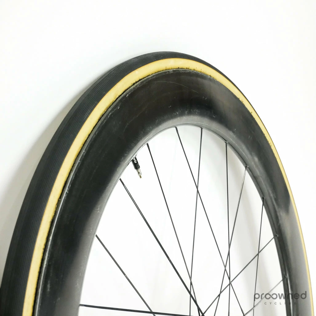The wheel is used but only shows a few minor cosmetic scratches, nothing that affects the performance of the wheel. The wheelset is equipped with a pair of Vittoria Corsa Graphene 25mm tires. The tires are used but in good condition.