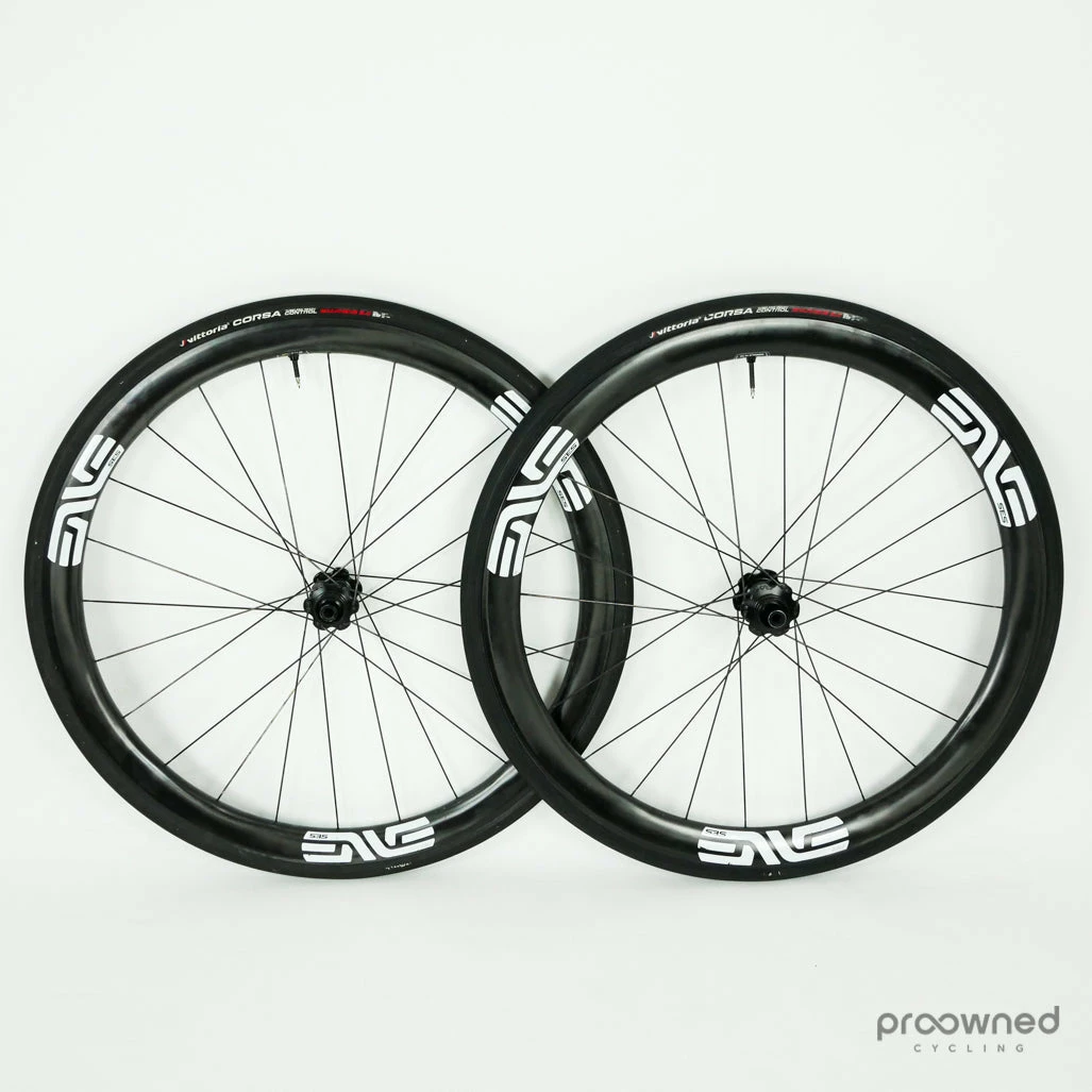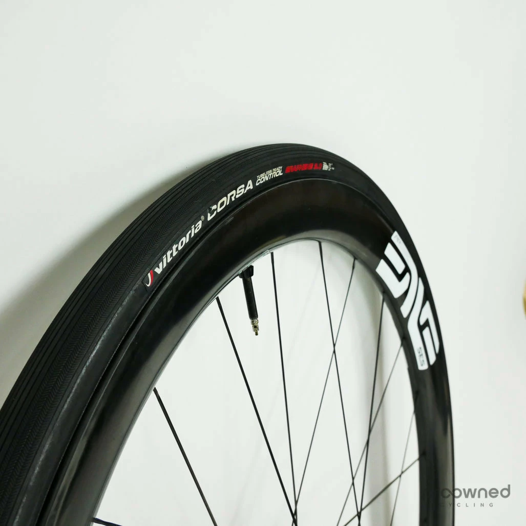 The wheels are equipped with a pair of Vittoria Corsa Graphene 2.0. The wheels are used but in good condition.