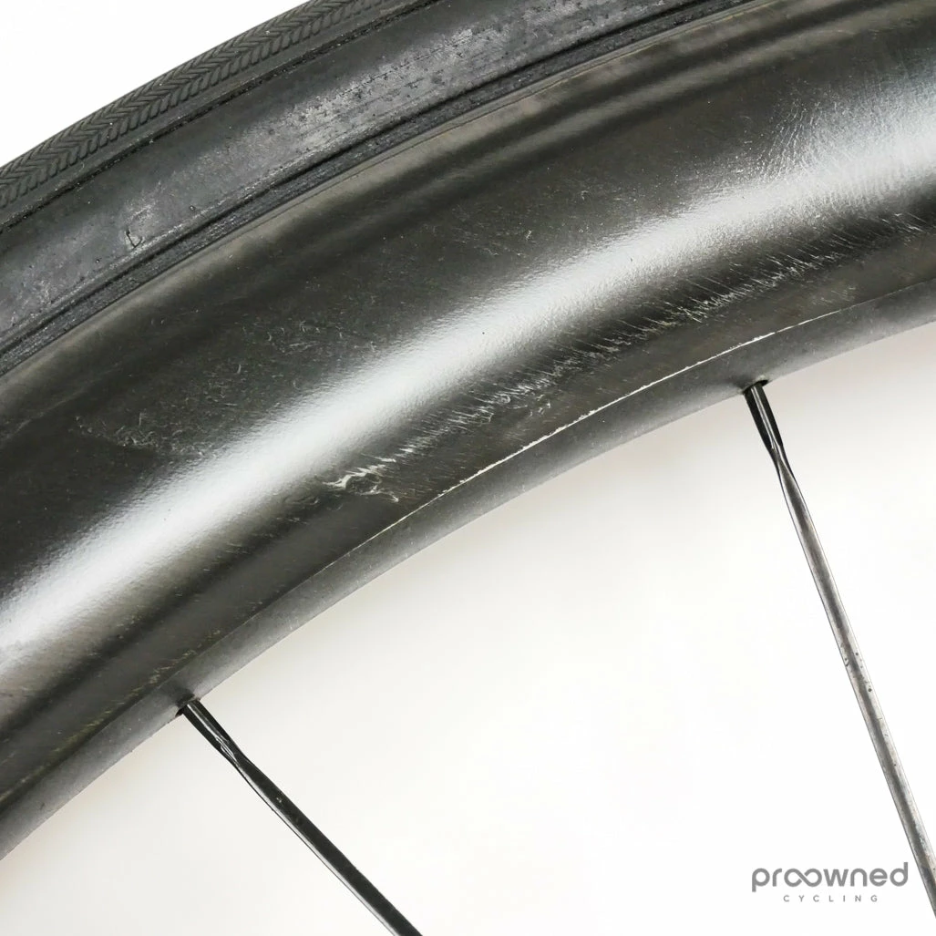 The wheels are equipped with a pair of Vittoria Corsa Graphene 2.0. The tires are used but in good condition and ready for many more miles of racing.