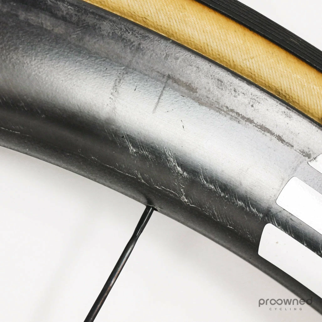 The wheel has some cosmetic marks and scratches but nothing that affects the performance of the wheel. The bearings run perfectly. Overall the wheel is in very good condition.