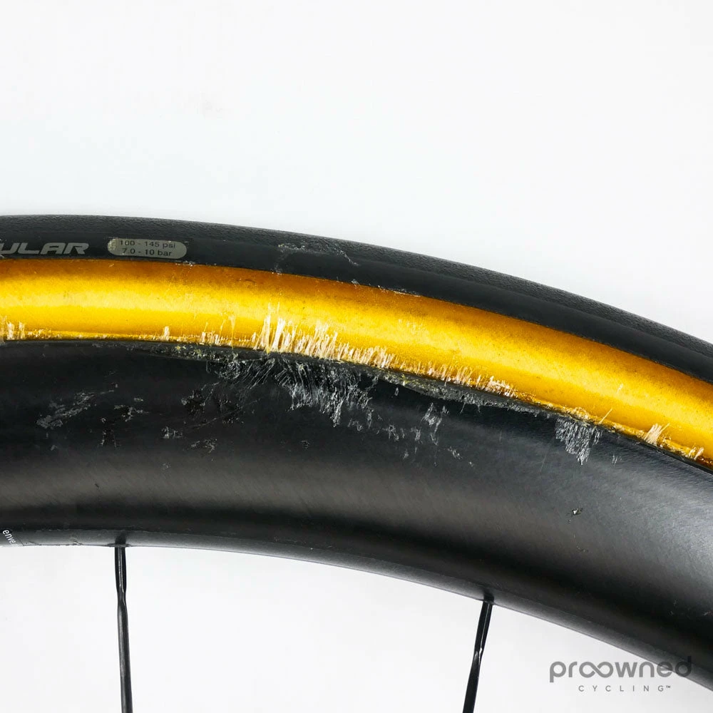 The front rim is brand new. The rear wheel has some marks and scratches. They are purely cosmetic and don’t affect the strength and the performance of the wheel.