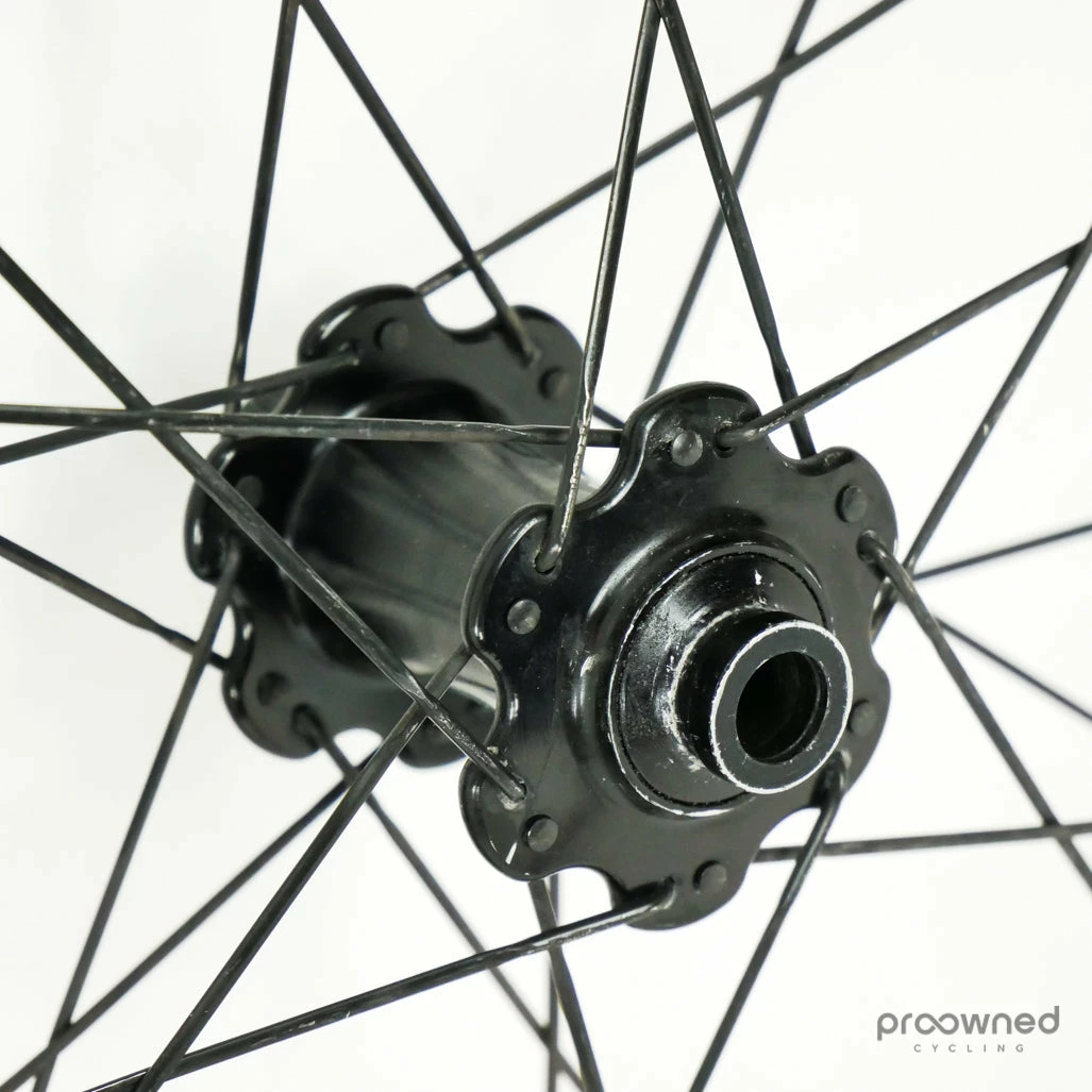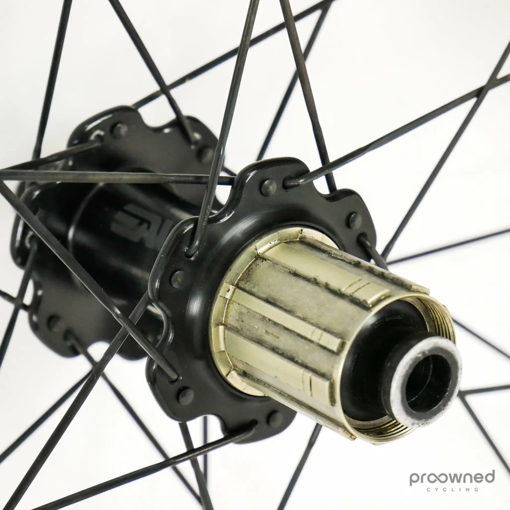 The wheelset has some cosmetic marks and scratches but nothing that affects the performance of the wheelset. The front wheel is without ENVE stickers and the rear wheel has black stickers. Bearings are running smoothly and the wheelset is overall in really good condition.