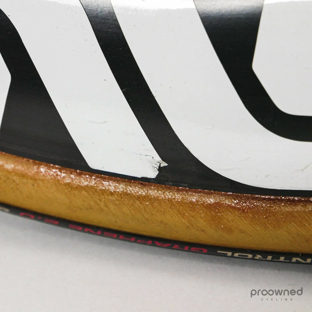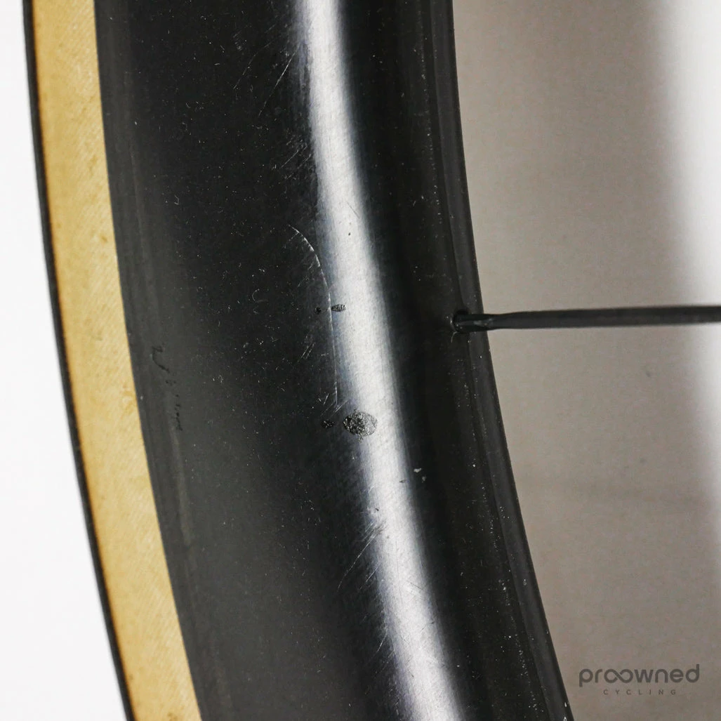 The wheelset is equipped with a combination of Vittoria Corsa Graphene and Corsa Control tires. The tires are used but in good condition.