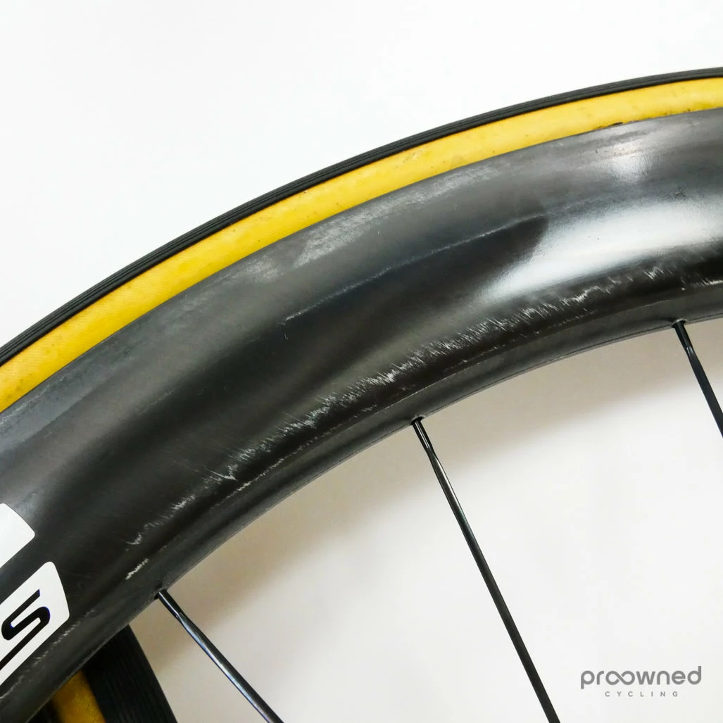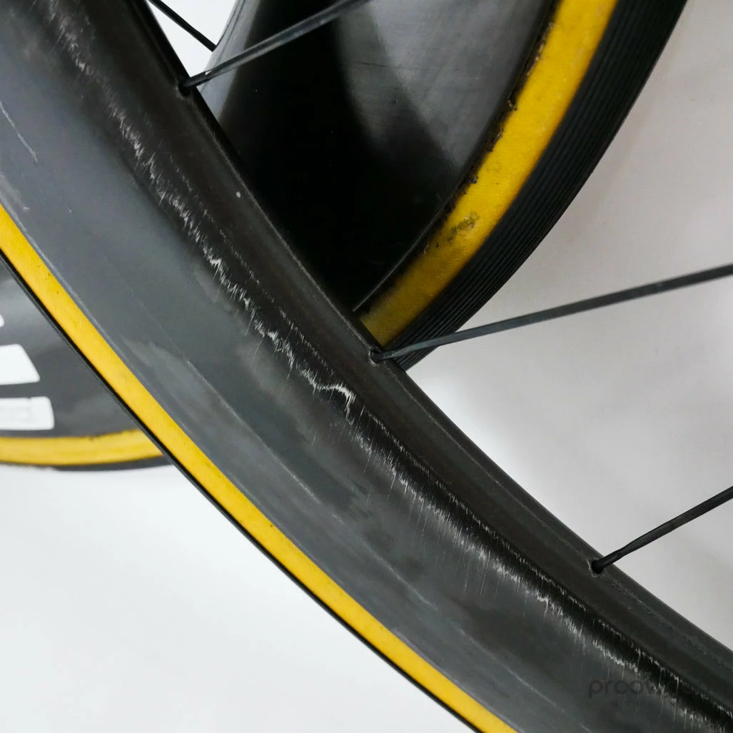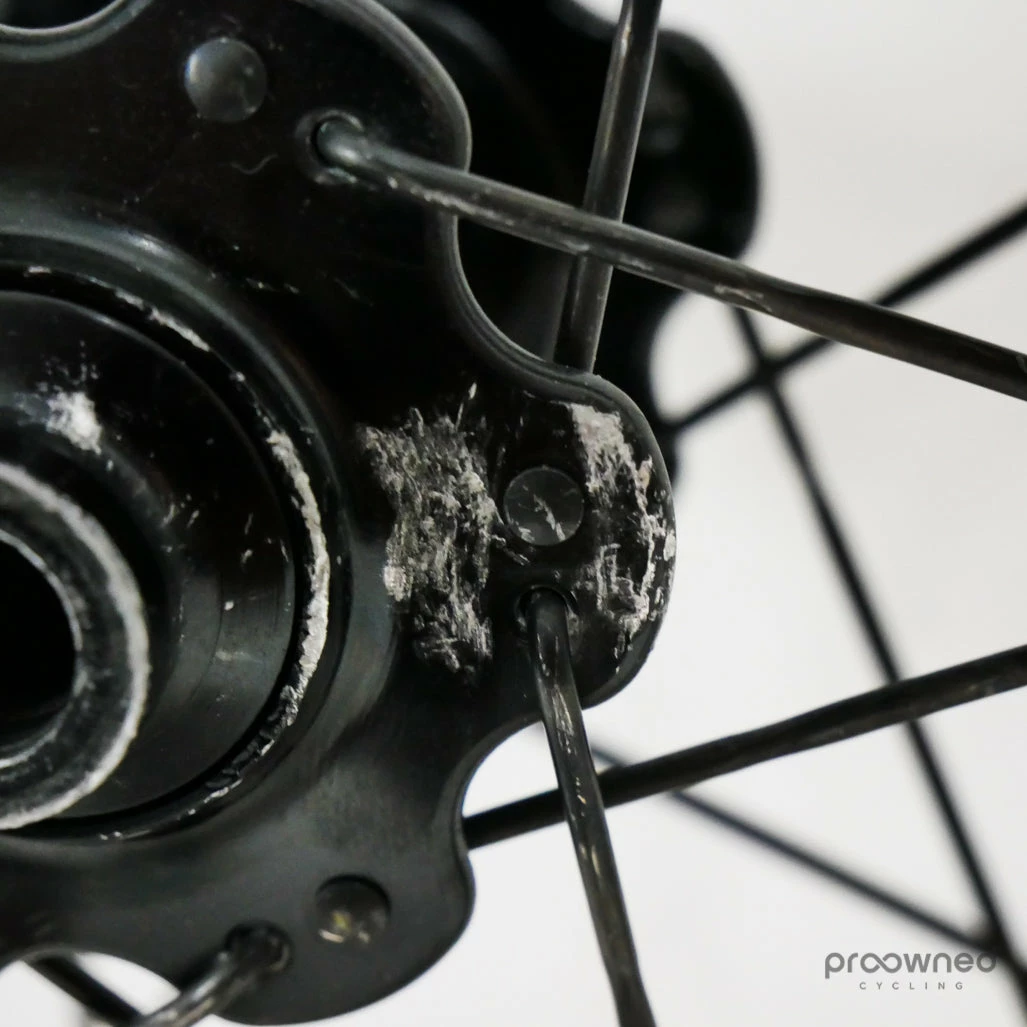 The wheelset has some marks and scratches. They are purely cosmetic and don’t affect the strength and the performance of the wheelset.