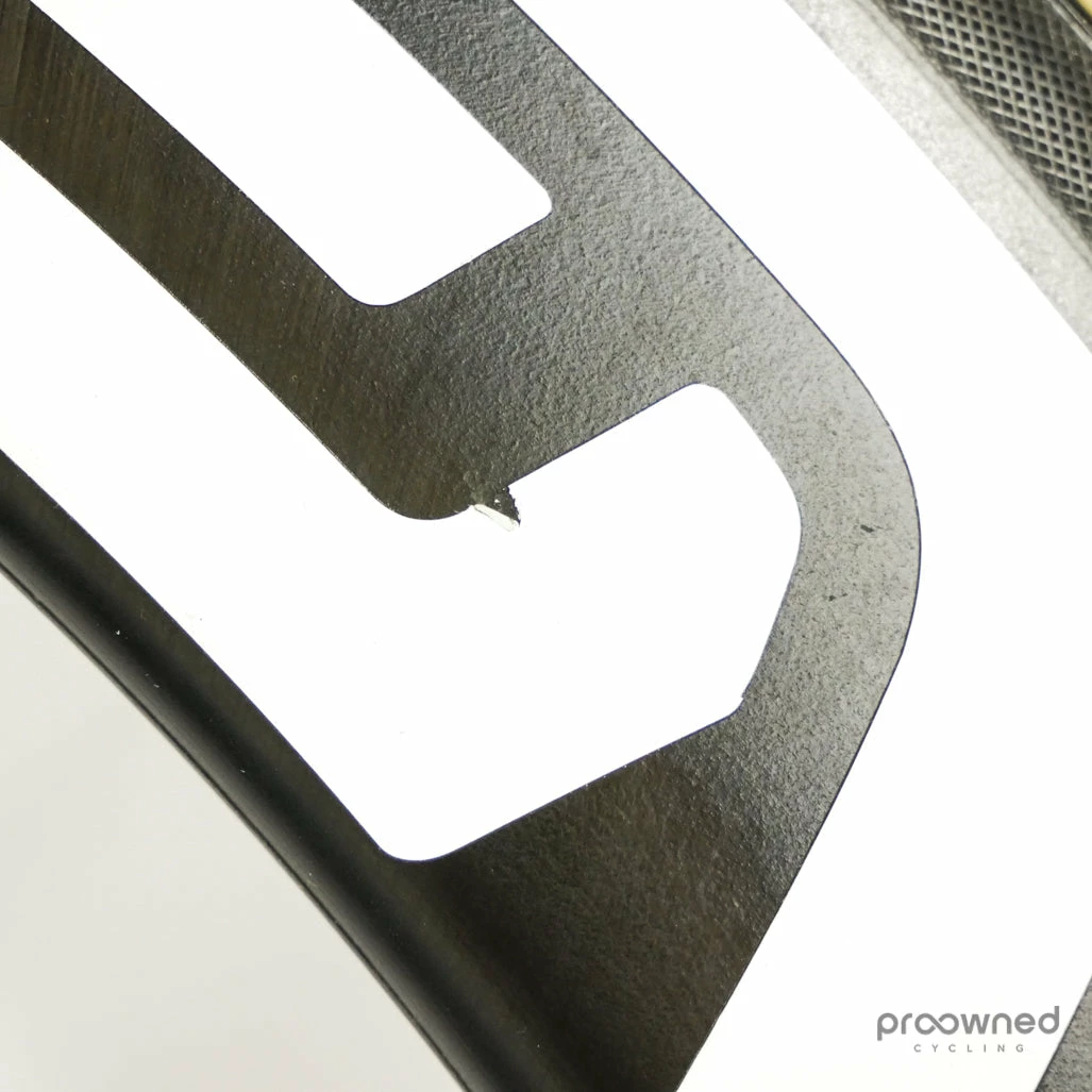 The wheel has some small marks and scratches. They are purely cosmetic and don’t affect the strength and the performance of the wheelset. The brake track is in good condition. Overall, the wheel is in great condition.