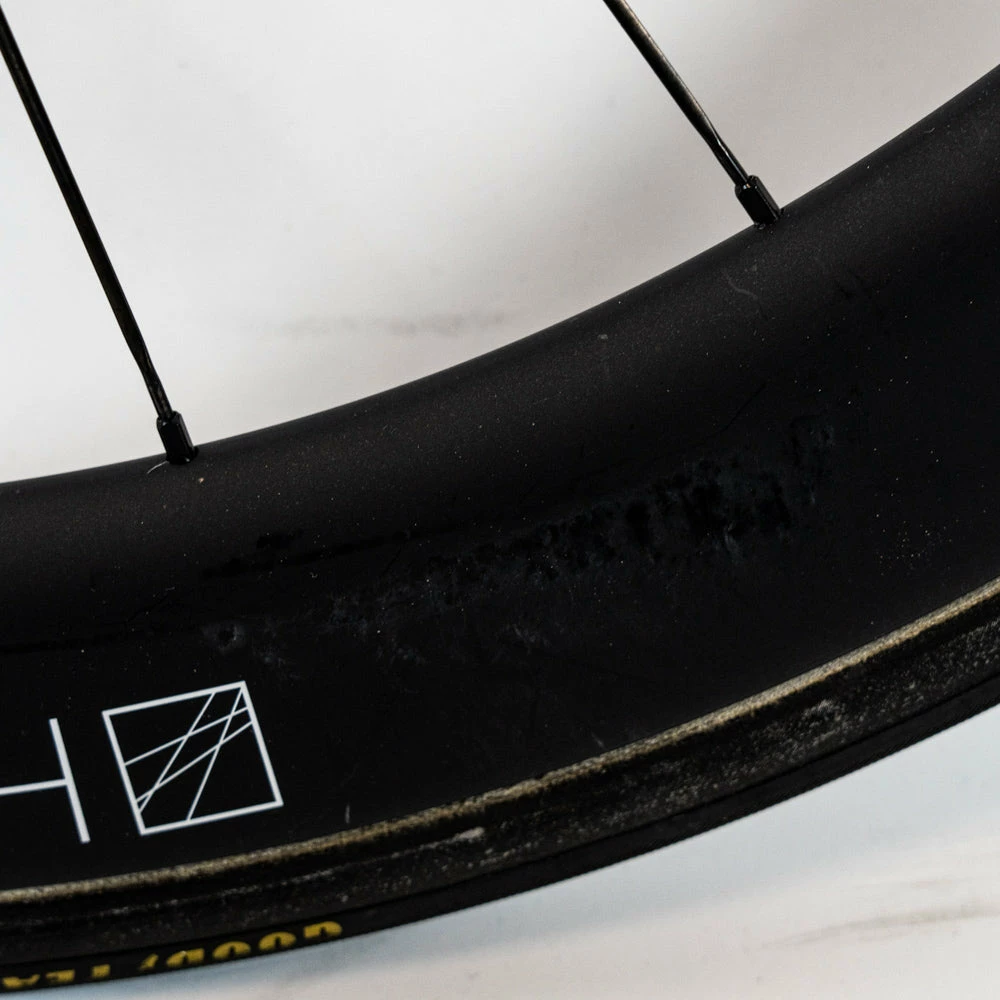 The wheel is equipped with Goodyear Prototype tubular tire in 25mm which is used but in good condition.