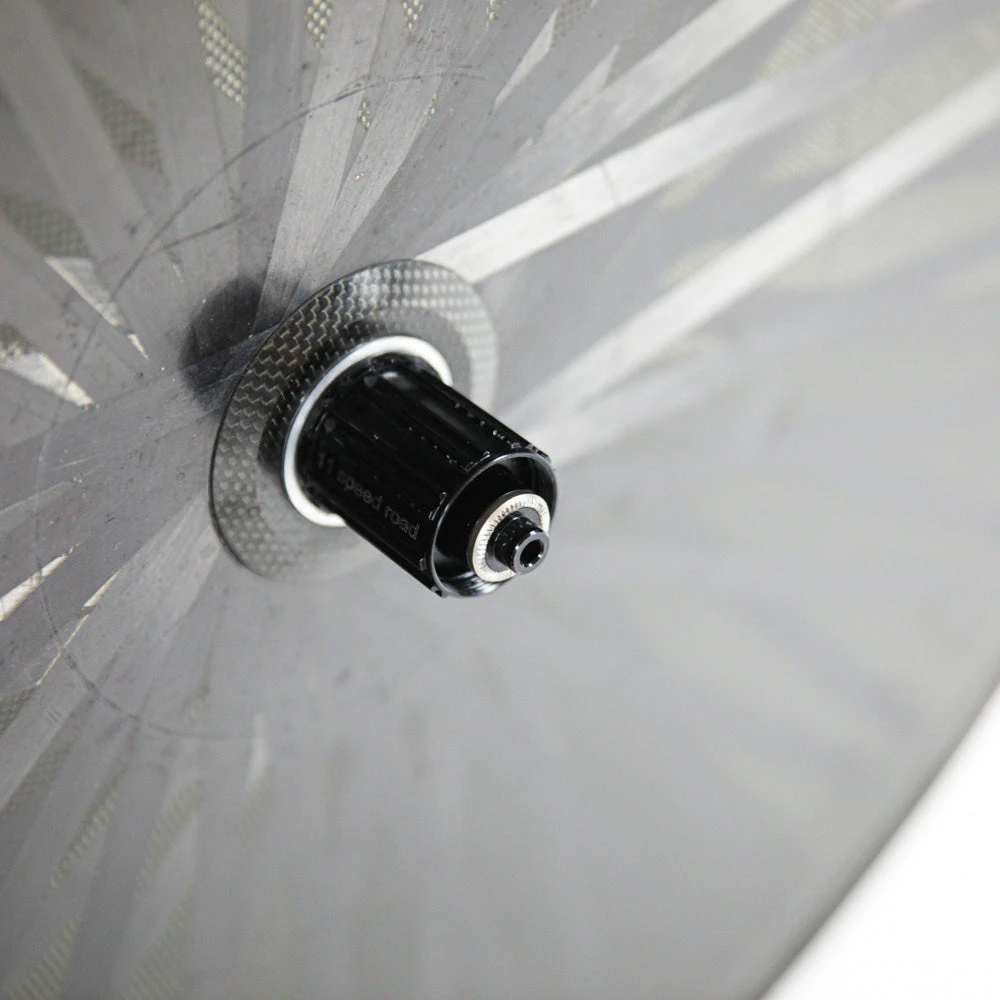 The full carbon disc weighs in at approx 800g and has incredible stiffness offering all the advantages needed to become the fastest on the course or on the track. The wheel is designed with top aerodynamics to avoid air turbulence, excellent climbing characteristics for the hilliest time trial courses, and exceptional acceleration especially out of the curve.