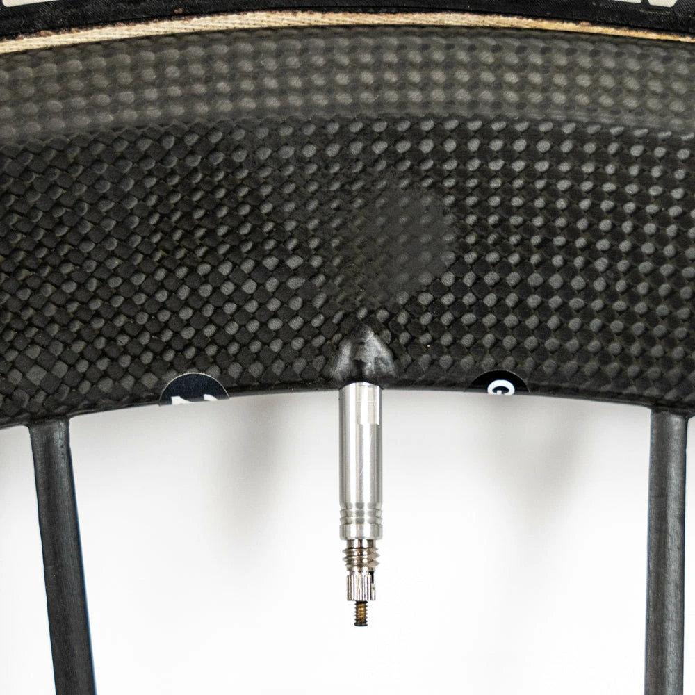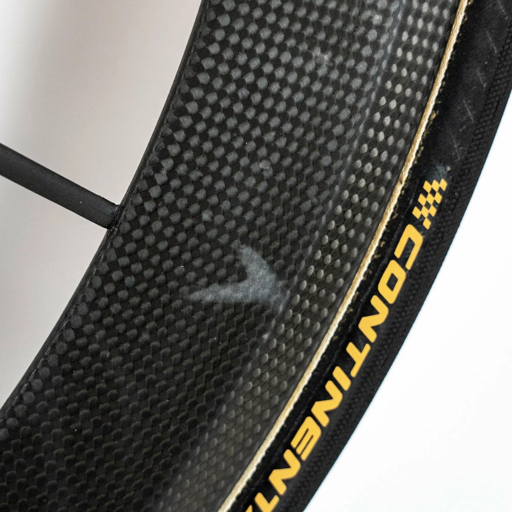 Lightweight Meilenstein Obermayer Tubular wheelset – Rim has a unique design and build that saves 170 grams each set. This is only feasible because the carbon layers have an entirely unique structure.