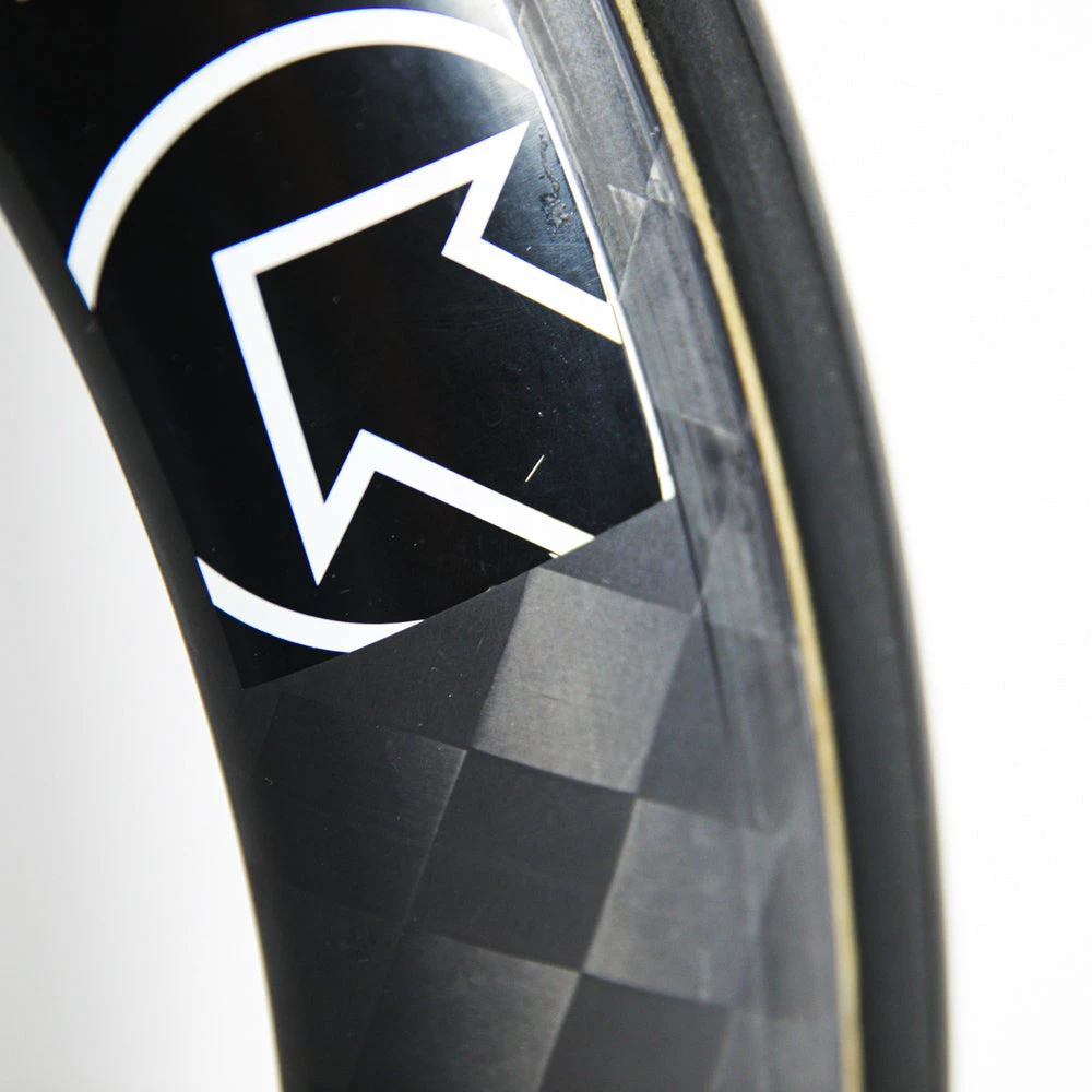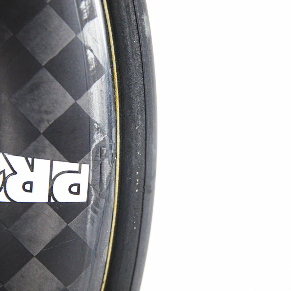 This wheel comes with a Pirelli P Zero Velo tubular tire mounted by the team mechanics. The race-ready lightweight tire is a fast and durable choice and offers great puncture protection as well as speed. The P Zero Velo is made for racing with low rolling resistance making it perfect for Granfondo raced and shorter high-speed racing.