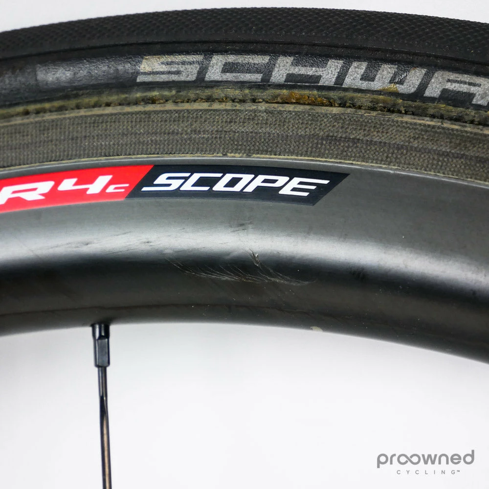 The R4C wheelset is built with a 45mm rim depth making it a perfect all-around wheelset that is deep enough to get the aerodynamic benefits of a deep rim yet low enough to be steady in windy conditions. With an approximate weight of 1375g a pair (without tires) the wheels are also a good companion going uphill.