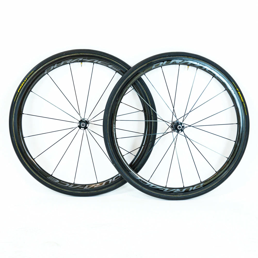 Shimano Dura-Ace C40 WH-R9100 tubular carbon wheelset for rim brakes.