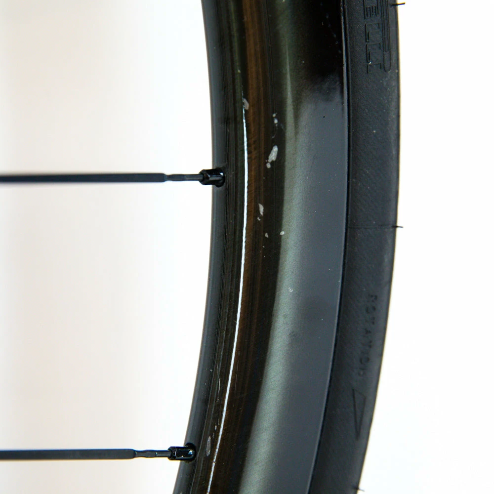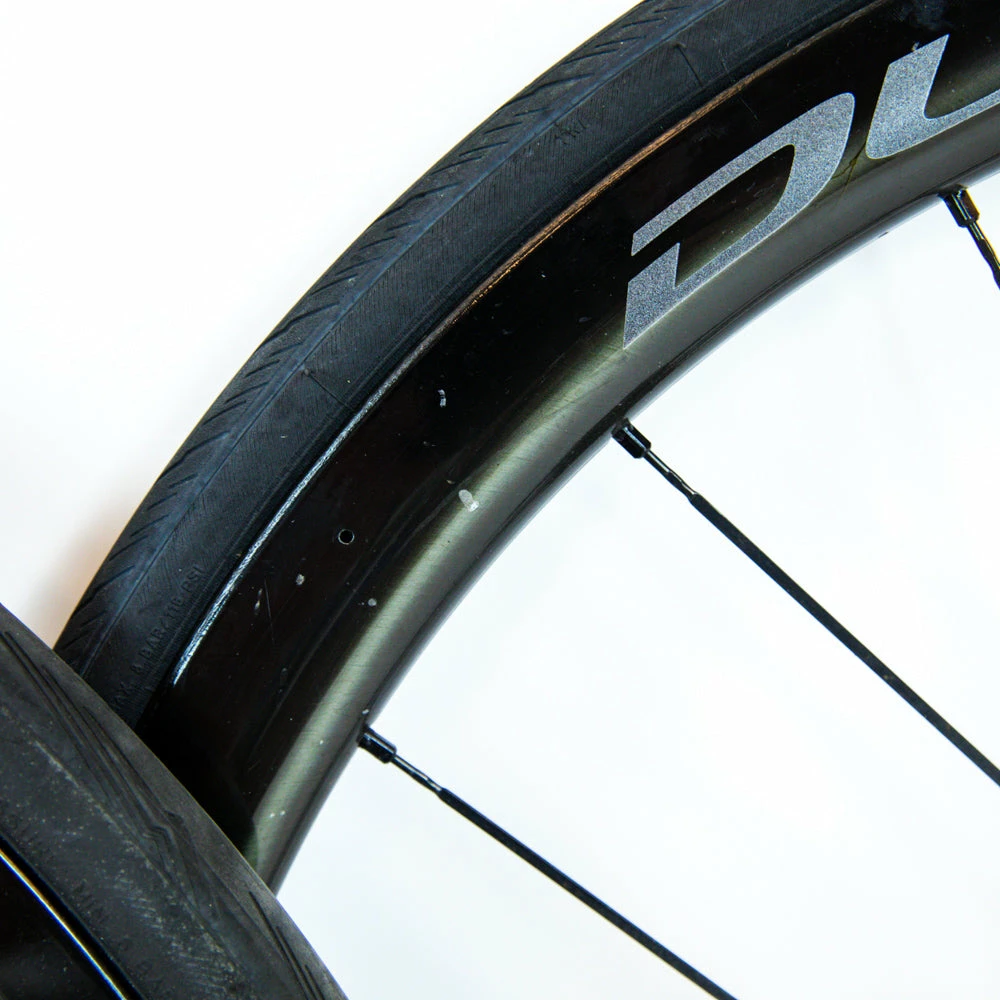This wheelset comes with a Pirelli P Zero Velo 4S front tire and a Pirelli P7 Sport rear tire.